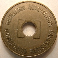 germ ptms 3052 E5 scheidt & bachmann / parkmunze sb(logo)(T & B = 5,5mm hole with straight lines / upper line of & points ?) (blank) Germany (Monchengladbach) Wm 30.1 Sq-ch