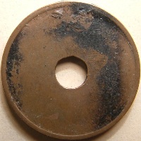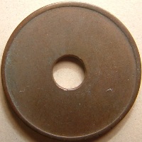 1. The first 4 letters are a abbreviation of the country. 2. The next 4 digits are a city number. 3. The next capital letter is the letter designation for that particular token. 4. If there is a small letter then this is a variety. Small vars specified by me and not descripted by Joseph have a digit on the end of the number. 5. Tokens with "PTMS" ar tokens from manfacturers of parking systems and used in different places. 6. If I used ZZ in a number then I miss some information of the token. | ObverseObverse