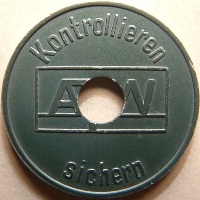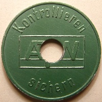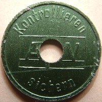 1. The first 4 letters are a abbreviation of the country. 2. The next 4 digits are a city number. 3. The next capital letter is the letter designation for that particular token. 4. If there is a small letter then this is a variety. Small vars specified by me and not descripted by Joseph have a digit on the end of the number. 5. Tokens with "PTMS" ar tokens from manfacturers of parking systems and used in different places. 6. If I used ZZ in a number then I miss some information of the token. | ObverseObverse