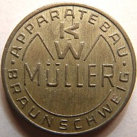 germ ptms 3056 S apparatebau / k / w / muller / . Braunschweig . ges.- gesch. / k / w / m / munzprufer Germany (Braunschweig) Wm/b 26.1 Sd