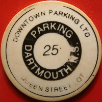 cana ns 3100 B | downtown parking ltd / 25c / queen street lot / (all pevious letters black) (following letters white) parking / dartmouth n. s. | (blank) | Canada | Dartmouth | Pw | 38.4 | Sd | |