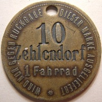 germ 3073 B wird nur gegen ruckgabe dieser marke ausgeliefert * / (number incuse) / zehlendorf (incuse) / 1 fahrrad (circle of dots) Germany Berlin B 40.7 Hole