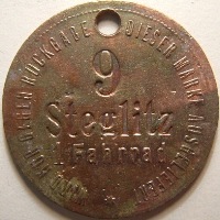 germ 3073 C wird nur gegen ruckgabe dieser marke ausgeliefert * / (number incuse) / steglitz (incuse) / 1 fahrrad (circle of dots) Germany Berlin B 40.7 Hole