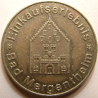 germ 3037 C | einkaufserlebnis / >> bad mergentheim << (building) | fur parkhaus & bus / (logo) / wertmarke | Germany | Bad mergentheim | B | 31.1 | Sd | |