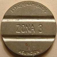 para 3100 C | estacionamientos / zona 3 / asuncion s (incuse) (2 grooves) | (blank) (? groove) | Paraguay | Asuncion | Wm | 22 | Sd |