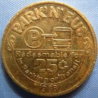 cana ab 3800 B | city of red deer / p / parking token (deer) | courtesy of red deer / 25c / in service only for / parking / in the / city of / red deer / downtown business | Canada | Red Deer | B | 23.9 | Sd | |