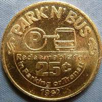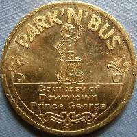 cana bc 3670 B | park 'n' bus / p / g (p / g on a cartoon character) / courtesy of / downtown / prince george | park 'n' bus / p (bus) / redeemable for / 25c / in parking or transit / 1992 | Canada | Prince George | B | 24.0 | Sd | |